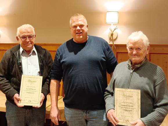 Zum Abschluß überreichte der Vorstand den neuen Ehrenmitgliedern eine Urkunde und gratulierte herzlich. Die anwesenden Gäste gratulierten mit Applaus.